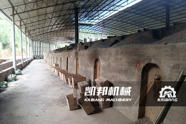 江西日產(chǎn)八噸機(jī)制木炭生產(chǎn)線現(xiàn)場(chǎng)。主要原材料為竹屑,炭化方式采用土窯。